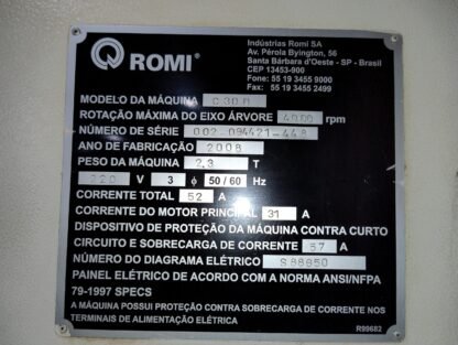 TORNO CNC ROMI CENTUR 30D PARA RETROFT